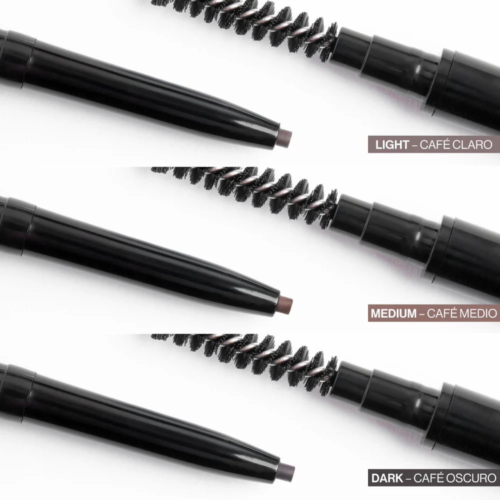 EL LÁPIZ PARA CEJAS 2 EN 1 CUENTA CON UNA MINA RETRÁCTIL ULTRA DELGADA Y UN CEPILLO SPOOLIE INTEGRADO PARA PEINAR Y DIFUMINAR. SU DISEÑO PERMITE CREAR TRAZOS FINOS QUE IMITAN A LA PERFECCIÓN EL VELLO NATURAL, LOGRANDO UN ACABADO PELO A PELO DE ASPECTO IMPECABLE. SU FÓRMULA DE LARGA DURACIÓN Y RESISTENTE AL AGUA MANTIENE TUS CEJAS DEFINIDAS DURANTE TODO EL DÍA.