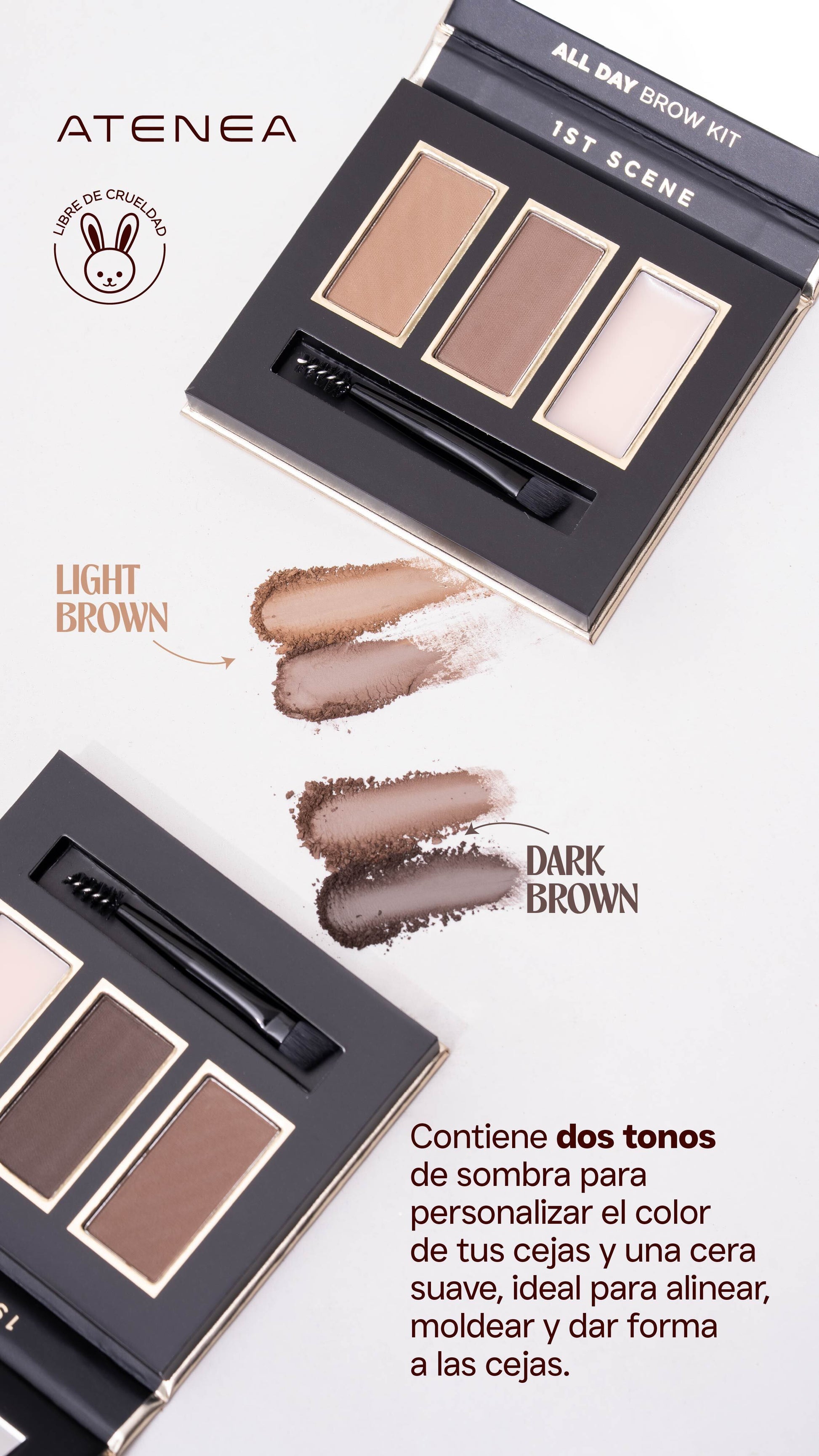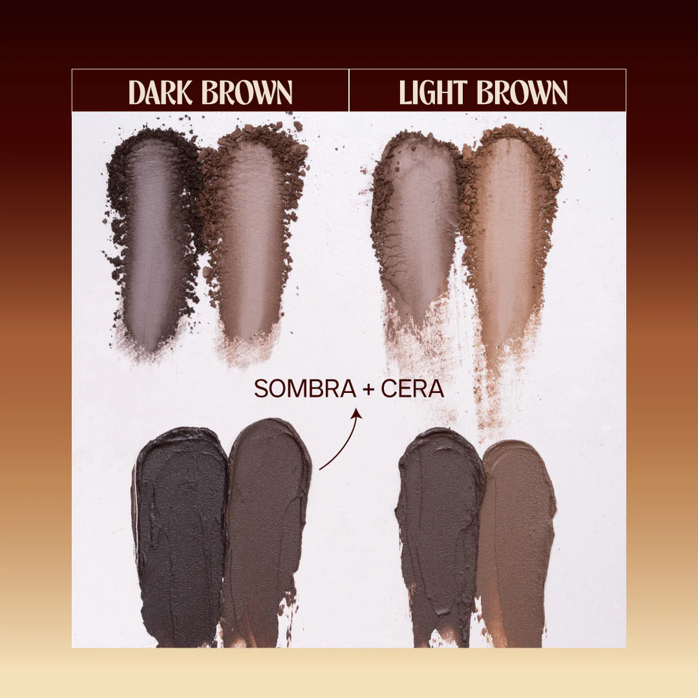 INCLUYE DOS TONOS DE SOMBRA QUE SE ADAPTAN A DIFERENTES TIPOS DE PIEL Y COLOR DE CABELLO, ACOMPAÑADOS DE UNA CERA LIGERA QUE MANTIENE LAS CEJAS ALINEADAS Y MOLDEADAS, SIN RESIDUOS NI SENSACIÓN PEGAJOSA.